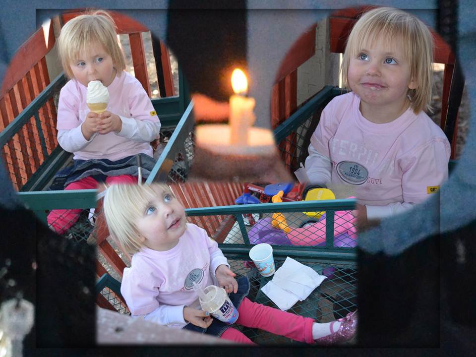 We return home to which one little Firecracker who believes she needs ice cream. Well Aunt Aum being Aunt Aum...off they go...Heather is encouraged to take a nap...as she had not received much sleep the night before and that the evening ahead though one to attend...is also one that could be draining as well. And so Izzy and Aum enjoy their ice cream...well I think Izzy enjoyed hers and then decided she needed Aum's. Firecracker had picked out her own wardrobe...Caterpillar shirt with glitter shoes...